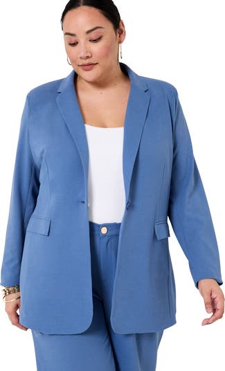 A gorgeous borrowed-from-the-boys blazer in a smooth, heavy-weight tricot fabric. Tailored to be figure-loving with a single button-front design, faux pockets and back vent.