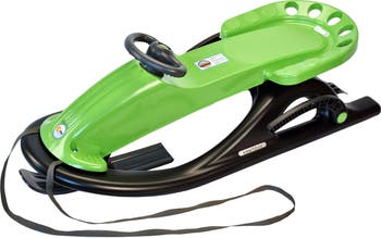 Built for speed and optimum maneuverability, the Snow Future Sled leaves other sleds in its trail of slush as it races down the hill. Equipped with non-corrosive stainless steel runners to cut a speedy trail and provide an optimum steering edge, the Snow Future is a breeze to maneuver with its dampened steering and thick, easy-to-grip steering wheel.