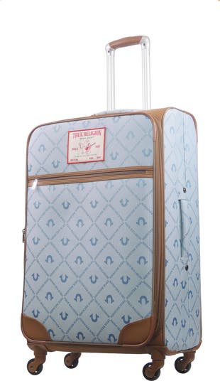 Travel in style with the True Religion Soft Side Luggage, designed for both function and fashion. This set includes three different sizes, perfect for all your travel needs. Crafted with lightweight materials and construction, each piece offers ease of mobility thanks to the smooth-gliding, lightweight single spinner wheels. The 2" expansion feature allows for extra packing space, ensuring you can bring everything you need for your journey. The luggage set includes soft-touch handle grips for comfortable transport and a thoughtfully designed interior with a mesh zip pocket and compression straps to keep your belongings secure and organized. The exterior front zip pocket provides easy access to your travel essentials. Whether you re headed on a weekend getaway or a long adventure, the True Religion luggage is the perfect companion for seamless travel.