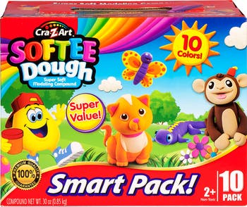 Cra-Z-Art Softee Dough: Smart Pack - Kids Modeling Compound 10 pack - Features a variety super bright colors, which are sure to add sunshine to your day and just the right colors for play time. Pack includes ten different colors of non-toxic Softee Dough modeling compound. Mold, shape, and create for hours of endless squishing and mixing. Great resource for children to use their imagination by creating all types of colorful 3D figures and shapes. Great for color, STEM, and sensory learning. Can be used for school projects, arts and crafts, DIY parties, and more. Be always creative with Cra-Z-Art. Be always creative with Cra-Z-Art. Spark your imagination - create design over and over again. The Softee Dough is Safe and Non-Toxic. The compound contains wheat and is not intended to be eaten. Each can contains 3 ounces of dough. With 10 cans in the pack, thats 30 ounces of colorful modeling compound! Suitable for ages 2 and up. Contents: Pack includes (10) 3 oz cans of Softee Dough in assorted colors.