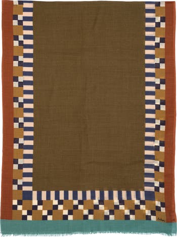 Soho Geo Wrap combines 80% wool and 20% nylon in a woven 27" x 72" wrap. Finished with a refined ½" self-fringe at the bottom ends, it balances geometric patterning with soft texture—an elegant layer of modern heritage.