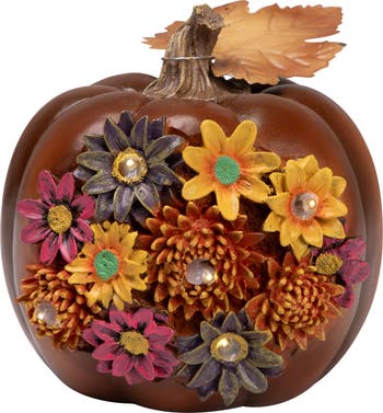 Solar Powered Floral Pumpkin Outdoor Fall Harvest Decoration - 7.25"