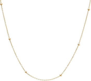 Introducing the Solid Ball Chain Necklace, a classic and versatile piece crafted from high-quality 14K gold. This necklace features small ball-shaped links, each measuring 2.5 MM in size, creating a delicate and elegant design. With a length of 16 inches and an additional 1-inch extender on each side, the necklace offers adjustable wear to suit your preferred neckline. The solid gold construction ensures durability and timeless appeal, making it suitable for both everyday wear and special occasions. Perfect for layering with other necklaces or wearing on its own, the Solid Ball Chain Necklace adds a subtle touch of sophistication to any outfit.