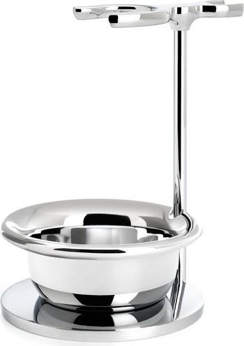 Chrome finish shaving set stand suitable for SOPHIST series and CLASSIC series shaving brushes and razors, including shaving bowl. Weight: 360g Measurements: 89 mm, height 130 mm