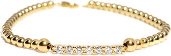 Description: Polished gold beads meet precision cut diamonds in the SphereGlow Bracelet. A sleek, minimalist design that carries quiet luxury and a subtle sparkle that never goes unnoticed. Why We Love It: It’s effortless the perfect layering bracelet that instantly elevates any wrist stack with fine jewelry refinement. Details: • 14K Yellow Gold • Lab Diamonds: ±0.49ct / 7 pcs • Beads: 3.0mm • Length: 6.5 inches