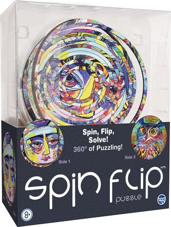 SPIN FLIP PUZZLE: ABSTRACT 2L - The Spin Flip Puzzle - Abstract is a delightful and engaging puzzle game designed to spark your creativity while providing a fun challenge for your mind. This unique puzzle features 14 concentric rings that can spin, flip, twist, and slide, creating a one-of-a-kind puzzling experience that is both stimulating and enjoyable. As you navigate the colorful and whimsical designs, you’ll appreciate the intricate details and vibrant images that come to life with each turn of the rings. The puzzle is double-sided, offering complementary images on both sides, which not only adds to the challenge but also doubles the fun as you work to solve each side. Perfectly sized to fit in the palm of your hand, this compact puzzle is designed for portability, making it an ideal companion for a variety of settings. Whether you’re on a road trip, at work, or waiting in the doctor’s office, the Spin Flip Puzzle can easily be taken along to provide entertainment and relaxation wherever you go. In addition to being a fun puzzle, it serves as a fantastic fidget and relaxation tool. The act of spinning and flipping the rings provides an effective way to decompress and relieve stress, making it great for use at your desk. It’s especially beneficial for individuals with ADHD, ADD, or autism, as it helps enhance focus and concentration while providing a calming sensory experience. When you’re done playing, it easily stores flat, allowing for effortless travel and minimal storage space. This engaging puzzle promises hours of entertainment for puzzle lovers ages 8 and up.