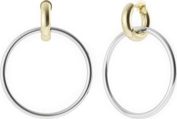 Elegant and timeless, these beautifully tiered hoop earrings are designed in a mix of 18-karat gold and sterling silver. The silver hoops can be easily detached, allowing you to switch up your look at a moment s notice.