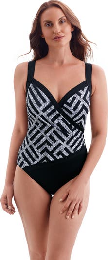 Inner firming shapewear in each Longitude swimsuit offers all day comfort while colorful prints and signature solid black styles grace this ageless swimwear. A longer length and finer fit enhance all figures, embracing confidence within.