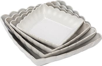 - Elevate the dining experience with this set of 4 square stoneware serving dishes with a beautiful scalloped edge in a matte white finish that adds a touch of sophistication and elegance to any table setting