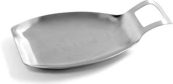 The Norpro Stainless Steel Jumbo Spoon Rest features an extra-large surface designed to accommodate oversized spoons, ladles, and cooking utensils. Made from durable stainless steel, it resists stains, odors, and corrosion while helping keep countertops clean. The deep-well shape catches drips, and the smooth finish makes cleanup quick and easy. Ideal for stovetop or countertop use in any kitchen.