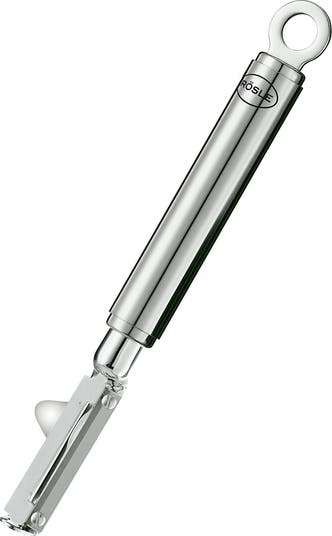 The Rösle 7.5 Inch Left-Handed Swivel Vegetable Peeler combines precision and comfort in a professional-grade tool. Made from 18/10 stainless steel, it features a swivel blade designed specifically for left-handed users. Ergonomic and durable, this peeler provides effortless control for peeling fruits and vegetables. Dishwasher safe for easy cleanup.