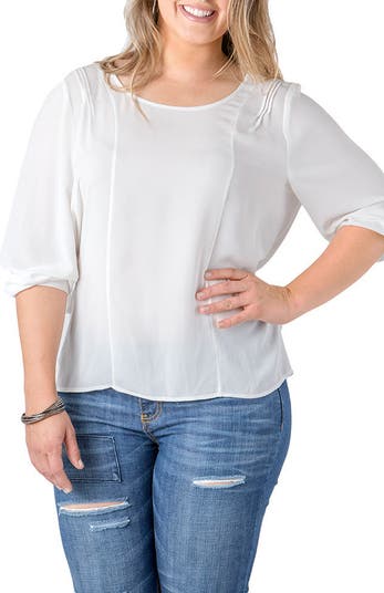 A simple white top to pair with nearly anything is cut from soft chiffon with pintuck detailing and an adjustable drawstring cinching the back for a figure-flattering peplum silhouette.