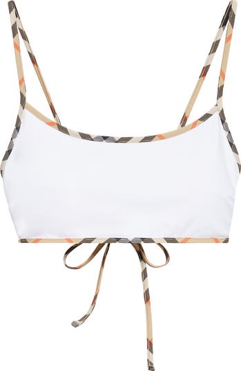 Show love for Burberry while at the beach or pool with this scoop-neck bikini top trimmed with House Check in the label s signature sand colorway.