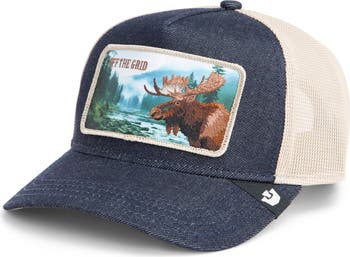 Get off the grid in this breathable trucker hat that features an embroidered patch and rugged denim paneling.