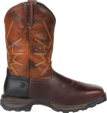This is the men s 11 Ventilated Western Steel Toe Durango Maverick XP. This style is crafted with full-grain leather and features a Durango X-treme A.C. ventilated shaft and air mesh lining to promote maximum airflow, keeping your feet cooler throughout the day. It includes the Durango X-Pand System, a hidden gore expansion on the inside medial seam for a universal fit and easy on/off, and the Durango X-Treme Comfort footbed with Memory Foam for all-day comfort and support.This boot also includes a high abrasion heel counter, a fiberglass shank for lightweight stability, and a dual-density midsole with firmer shock absorbing heel for added support, combined with a soft shock absorbing forepart for ultimate flexibility and comfort. An EVA midsole adds further lightweight cushioning for active wear. The rolled shank area and anti-torsion ridged external shank provide added lateral stability.The outsole is a multi-durometer rubber with high abrasion outer lugs for high-impact durability, and softer durometer mid lugs for added flexibility, along with increased heat, slip, and oil resistance. It features double row sole stitching around the square toe for enhanced durability and a 1 ½ rocker heel for a confident stride.Break ground in the 11 Ventilated Western Steel Toe Durango Maverick XP. Get your pair today!