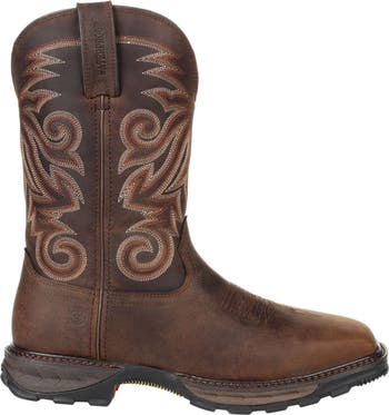 This is the men s 11 Burly Brown Waterproof Steel Toe Durango Maverick XP. This style is full-grain leather with a waterproof membrane bootie construction to keep your feet dry all day long. It features a soft mesh lining, the Durango X-Pand System which is a hidden gore expansion on the inside medial seam for a universal fit and easy on/off and the Durango X-Treme Comfort footed with Memory Foam for all day comfort and support. It has a fiberglass shank for lightweight stability and a dual-density midsole with firmer shock absorbing heel for added stability and a soft shock absorbing forepart for ultimate flexibility and comfort. The rolled shank area and anti-torsion ridged external shank provides added lateral stability and the outsole is a multi-durometer rubber with high abrasion outer lugs for high impact durability and softer durometer mid lugs for added flexibility and increased heat, slip and oil resistance. This style has a double row sole stich around the square toe for added durability and a 1 ½ rocker heel. Break ground in this men s 11 Burly Brown Waterproof Steel Toe Durango Maverick XP style. Get a pair today.