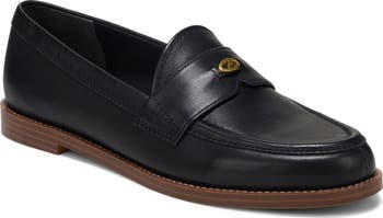 Smooth leather and a rounded toe anchor this classic loafer punctuated by gleaming hardware with understated presence.