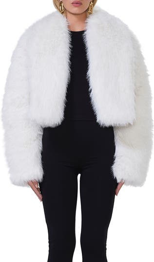 Prepare for the paparazzi in a rock-star jacket made from showy faux fur.