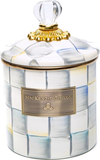 Gilt details highlight the hand-painted color-dragged checks of this enameled-steel canister you ll love displaying on a kitchen counter as it stores your pantry staples.