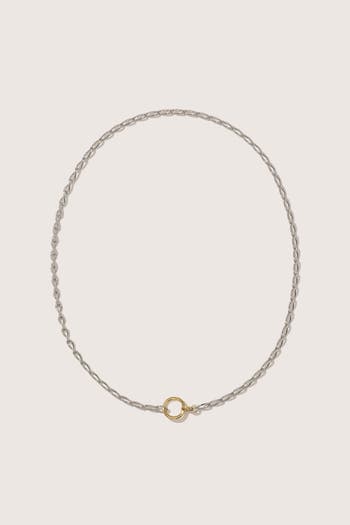 A tactile reminder of enduring connection. The Eternal Necklace is crafted from recycled sterling silver with a signature Otiumberg link up detailing and closure in 14-Karat Gold Vermeil. Necklace designed to sit elegantly on the chest.