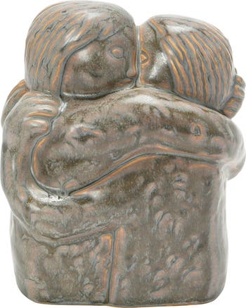 - This charming sculpture features a romantic stoneware construction of 2 embracing figures in a rich reactive glaze