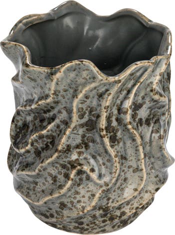 Stoneware Organic Shaped Vase with Crackle Glaze, Grey