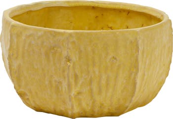 - A lovely stoneware planter that features an organically shaped detail and a yellow color