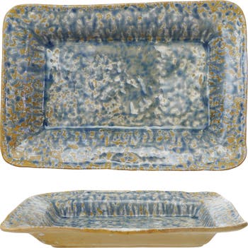 This Stoneware Serving Dish with Reactive Crackle Glaze in blue is a captivating addition to any home, featuring a serene blue hue and a unique crackle glaze finish. Perfect for farmhouse, coastal, French country, and contemporary decor styles, this rectangular dish is ideal for serving a variety of dishes, adding a touch of elegance to any table setting. Made of durable stoneware, each piece varies slightly, ensuring a unique charm. It measures 12.25 inches in length and 8.5 inches in width, making it perfect for serving appetizers, side dishes, or even main courses. The reactive crackle glaze adds a touch of artisanal flair to any dining experience, making this serving dish a versatile and stylish addition to any collection.