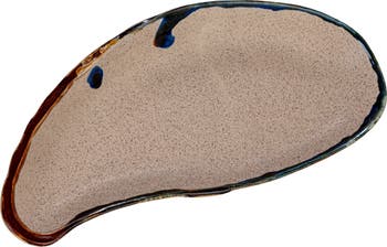 - A unique stoneware plate that features a shell shape and a reactive glaze finish that makes each one unique
