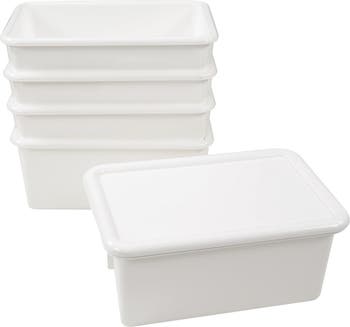 Precision-molded storage bin and lid constructed from quality colored polypropylene. Set of 5 storage bins. Bins measure 5.25"H x 12.25"W x 8"D.