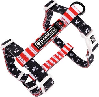 We get so many compliments about how soft and durable our leashes are…. So we decided to make a harness out of the same super soft material! The Frenchie Strap Harness is perfect to throw on when you are running out the door, going on a walk, or going for a quick potty break! Its Easy-On-Easy-Off capability allows you to slip it on, and go, All the while, looking uber stylish! -You never know who you are going to meet that day;) Frenchie Strap Harnesses feature vibrant dual printed polyester webbing strap, black accessory components and heavy duty branded buckle. They are one size fits most. Adjustment Range: Neck: From 11" - 22" circumference Belly: 15.5" - 32.5" circumference. |Dual Sided sublimated Polyester Strap |Black D-Ring Leash attachment|High Density Branded buckle |Fun Vibrant Color