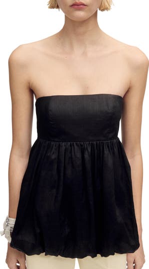 A bubbly hem adds a fun, flirty attitude to this day-to-date-night top meant to show off your shoulders.