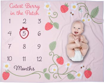 - Strawberry Patch polar fleece milestone photo opportunity baby blanket