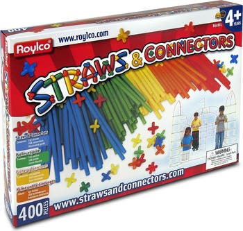 4 years up. Straws and Connectors are ideal in helping children develop Science, Technology, Engineering, and Math (STEM) skills. It allows children to enhance hand-eye coordination, motor skills, logic, and problem-solving skills all while playing. Build a fort, rocket, boat, tower, tunnel, or bridge! Design your own scientific model, or create something unique. The opportunities are endless! The straws fit snugly on the connectors and are flexible so you can build arches and tubes. This set includes 400 pieces (232 straws and 168 connectors).