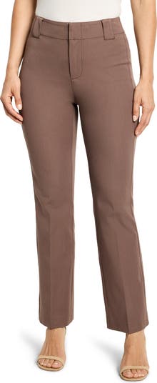 Stretchy slim-fitting pants flaunt a high waist and kicked-out hems for a perfectly polished silhouette.