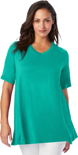 Look no further for your new favorite tunic. We updated our bestselling swing tunic with short sleeves and a V-Neckline. The trapeze silhouette is made to flatter every body, and perfectly pairs with jeans or leggings for a great everyday outfit.