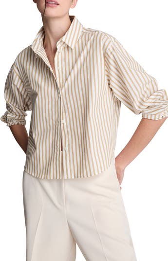Crisp stripes lend fresh definition to this cropped cotton button-up shirt cut with a relaxed, modern fit.
