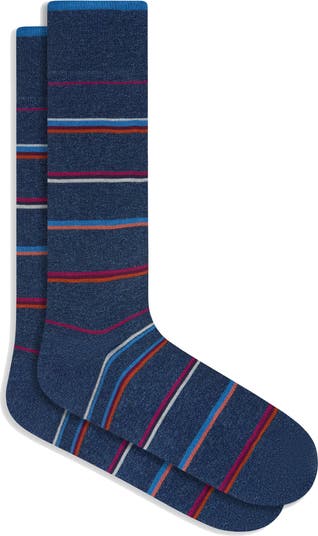 Ringed in colorful stripes, these dress socks made with a touch of lightweight nylon bring the comfort and polish of mercerized cotton to all your favorite looks. Pair them with anything casual or semiformal to give your ankles a pop of personality at any occasion.