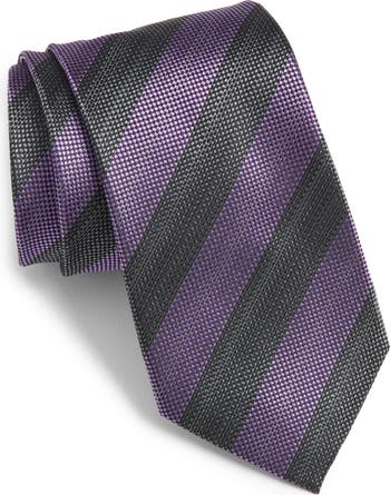 Fashioned from lustrous silk jacquard, this striped tie brings dapper distinction to formal and semiformal attire.