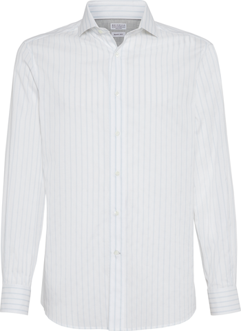 - Placket closure with mother of pearl buttonsSpread collarCuffs have one mother of pearl buttonEasy fit