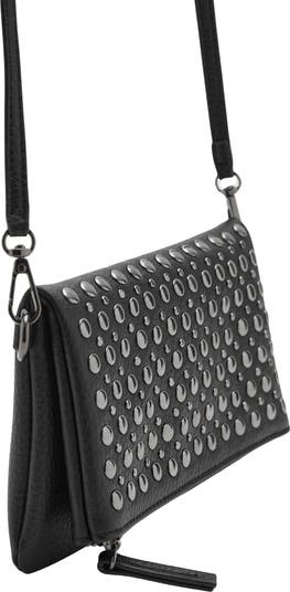 This studded faux-leather shoulder bag has a fold-over design so you can carry different essentials depending on the day.