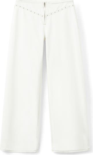 Drapey wide legs punctuate these low-rise jeans cut from nonstretch denim and adorned with high-shine studs.