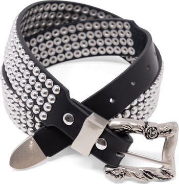 Pull together your look with the unmistakable retro style of this wide leather belt covered in polished studs.
