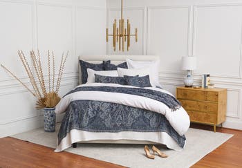 In smoldering shades of blue with notes of warm colors, Suman is crafted of 100% Jacquard-woven cotton in a captivating paisley design that reveals new elements and patterns each time it catches your eye. Fully accessorize. Exuding timeless elegance, Suman bestows the feeling of an heirloom, passed down within the family for generations. Treasure these pieces for years to come.