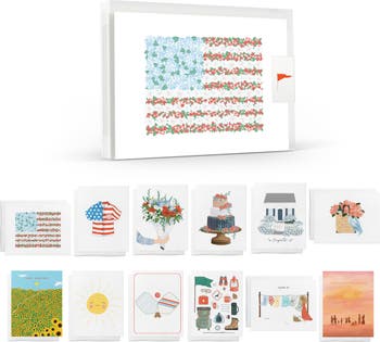 This 12-pack of assorted everyday greeting cards is elegantly illustrated by artist Ingrid Ramus, founder and owner of the Ramus Co brand. Each card has unique artwork on the front and is blank inside. All greeting cards are made in the USA on heavyweight uncoated and locally-manufactured card stock. Each card is accompanied by a hand-embossed envelope made with heavyweight 95lb paper and a peel-and-stick flap - no licking envelopes here! Twelve white envelopes are included. All Ramus Co. greeting cards are printed on FSC and SFI certified paper sourced from a regional mill that harnesses 66% of its energy from on-site sustainable sources, such as emission-free hydroelectricity and biomass co-generation from wood waste. All 12 greeting cards come packaged as a boxed set. Husband-and-wife team Calvin and Ingrid Ramus founded Ramus Company in 2019, in New England, USA. Ingrid, the creative designer behind the brand, originates from Mexico, where she cultivated her skills in fashion and textile design. Drawing from her unique and inquisitive perspective on preppy style, Ingrid prolifically designs whimsical yet classic stationery and lifestyle items.