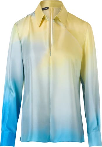 Albert Kriemler enters his blue period for fall 25, focusing his Blue Hour around a pared-back palette that allows fabrics—like the lustrous silk twill of this zip-front top—to really shine.