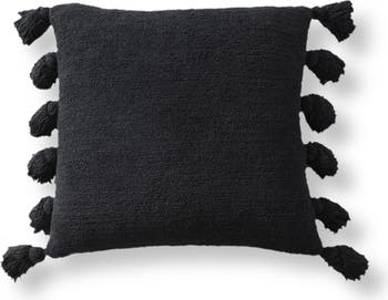 A fringe of pom poms waves cheerfully from the sides of this plush accent pillow plumped with a soft memory foam insert.