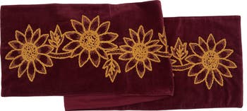 C&F Home s Sunflower Harvest table runner is the perfect way to bring a little sunshine to any table! Crafted from embroidered velvet in a burgundy background and detailed with bright, cheerful sunflower accents, this runner adds a touch of a monochromatic and elegant floral nature-inspired whimsy to any decor.