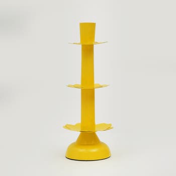 Like sunlight sculpted in metal, the Sunny Tapered Candleholders bring warmth and joy to any setting. Their playful floral silhouettes—blooming in a vibrant yellow—stand tall at 6 and 9 inches, creating a dynamic interplay of height and form.