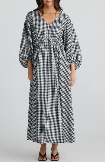 Billowy sleeves frame this breezy cotton maxi covered in picnic-perfect checks for a light-hearted vibe.